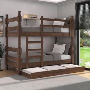 O Treliche Madeira Maciça - vira 2 Camas - para Colchão 78/88 x 188cm Porto Multimóveis é produzido 100% em madeira maciça de pinus proveniente de reflorestamento. Com cabeceiras torneadas (espessura de 8,5 x 8,5cm), possui barras reforçadas e suporta até 110kg. Super versátil, você pode utilizá-lo também como duas camas e, para facilitar, possui dupla furação podendo ser utilizado para colchão de 78 ou 88cm. Não acompanha colchões.