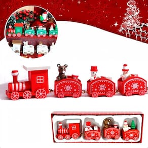 Nos vagões, passageiros muito especiais trazem ainda mais vida e alegria ao cenário: um urso, um boneco de neve alegre e um menino encantado com o espírito natalino. As rodas, também de madeira, complementam o visual rústico e autêntico, mas não permitem o movimento, reforçando o caráter decorativo da peça. Os vagões e a locomotiva se conectam facilmente por meio de encaixes simples, facilitando o manuseio e a disposição do trem no ambiente.