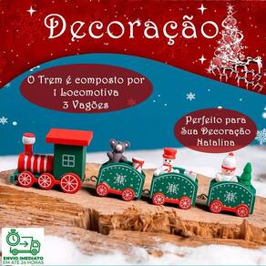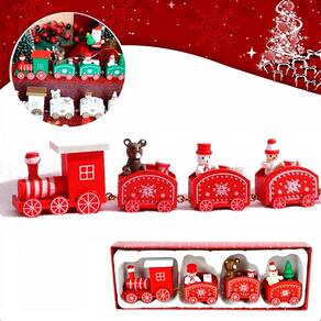 Trem Brinquedo Decoração Natal Trenzinho De Madeira-Vermelho