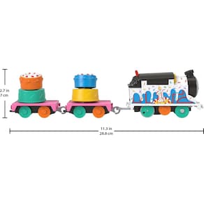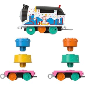 Trem de brinquedo motorizado Thomas & Friends, motor Wobbly Cake Thomas com carros de carga e peças para crianças pré-escolares de 3 anos ou mais - Coleção de trens de brinquedo motorizados que celebram os melhores momentos da série Thomas & Friends - Inclui 1 motor, estilizado para comemorar um momento divertido do show, além de um vagão de carga acoplável (cada trem de brinquedo é vendido separadamente e sujeito à disponibilidade). - Cada motor vem com conectores de plástico para conectar a outros trens, veículos, vagões de carga ou licitações da Thomas & Friends (veículos adicionais e peças de brincar vendidos separadamente e sujeitos à disponibilidade). - Esses trens de brinquedo são compatíveis com todos os trilhos da Thomas & Friends, exceto madeira (conjuntos de trilhos vendidos separadamente e sujeitos à disponibilidade). - Ajuda a fortalecer as habilidades motoras finas e incentiva brincadeiras criativas de contar histórias para crianças em idade pré-escolar de 3 anos ou mais