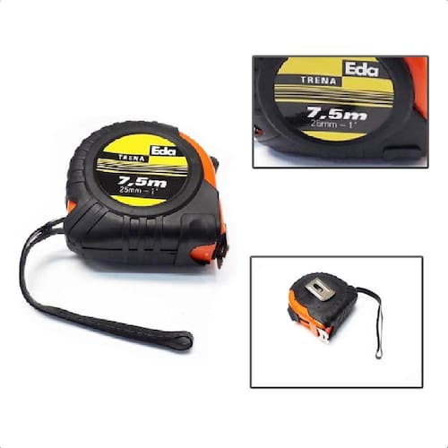 Especificações: - marca: eda; - modelo: 0bd; - medidas da embalagem l x a x c : 08,3 x 4 x 08 cm; Comprimento da fita: 7.5 metros; Largura da fita: 25 mm; Características: - com trava; - presilha de aço; - leve e portátil; - material: aço, plástico pp e borracha.