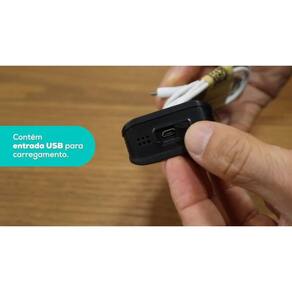 Características Material: plástico ABS. Acompanha 3 pilhas AAA reccaregáveis , cabo USB e case para transporte. Alcance: 30m. Alimentação: Pilha ou Cabo USB Carrega também por fonte