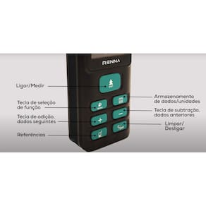 Diferenciais - Perfeita para medições de disntâncias longas com praticidade e rapidez; - Dispositivo compacto e portátil; - Funções de Medida: Área, volume e Pitágoras I, II e III ; - Possibilidade de alteração do ponto de referência Início ou fim da trena ; - Ângulo digital em tempo real; - Mede de 20cm a 30mt; - Grau de proteção IP54; - Possui armazenamento de dados/unidades, teclas de adição e subtração de dados anteriores Marca: Não Informado