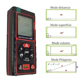 Seu design ergonômico com botões emborrachados oferece conforto e segurança, permitindo que você trabalhe com firmeza, mesmo em longas jornadas de uso contínuo. Além disso, suas múltiplas funções, como medição de áreas, volumes e até cálculos usando o Teorema de Pitágoras, fazem deste medidor uma ferramenta completa e indispensável.