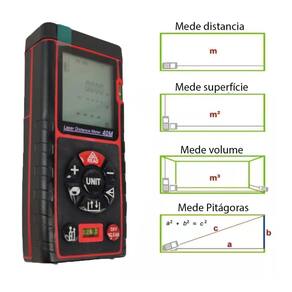 Seu design ergonômico com botões emborrachados oferece conforto e segurança, permitindo que você trabalhe com firmeza, mesmo em longas jornadas de uso contínuo. Além disso, suas múltiplas funções, como medição de áreas, volumes e até cálculos usando o Teorema de Pitágoras, fazem deste medidor uma ferramenta completa e indispensável.