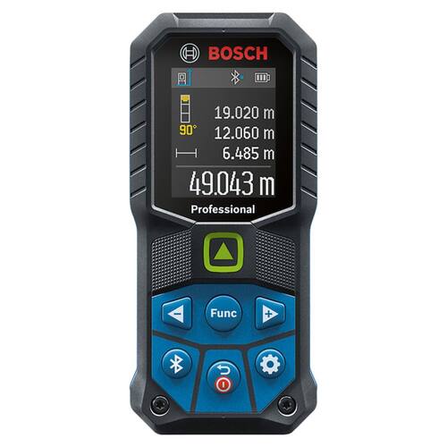A trena laser GLM 50-27 CG Professional oferece visibilidade superior do ponto laser, design muito duradouro e documentação rápida. Sendo seu ponto de laser verde mais visível se comparado ao laser vermelho, ele é especialmente qualificado para medições de longa distância em condições internas com luminosidade. Graças à combinação do design com certificação de proteção IP65 e um revestimento de borracha para absorção de choque, a ferramenta resiste a quedas de 1,5 metros, mesmo em concreto duro e canteiros de obras adversos. A conectividade Bluetooth® e o aplicativo Bosch MeasureOn garantem uma documentação e transferência rápida dos resultados de medição em um abrir e fechar de olhos.