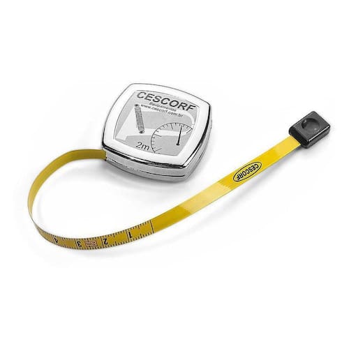 Trena Corporal Antropométrica Fita Em Aço Cescorf - 2 Metros A tecnologia desenvolvida para Trena Antropométrica garante que a fita De 200 cm se desenrole com facilidade. Sua Estrutura se ajusta confortavelmente às mãos do usuário. O equipamento foi projetado para Suportar quedas acidentais e possui retração automática. A fita possuiu área em branco antes Da linha "zero" para permitir a medição apurada. Especificações Técnicas: - Destinada para a medição de perímetros corporais - Resistente a quedas, inelástica, inextensível, resistente e de fácil higienização - Fita em aço com escala numérica gravada em tinta resistente ao uso - Ergonômica - Comprimento da fita: 200 cm - Escala em centímetros com graduação de precisão de1 mm - Escala numérica com indicação de dezena em números maiores e em vermelho a cada 10 cm - Fita com área em branco antes da linha "zero", de 10 cm, para a mensuração adequada - Retração automática - Resolução em milímetros - Caixa confeccionada em plástico ABS, resistente e leve. Dimensão: 5,3 x 2,2 x 6,51,3 cm Material : Caixa em plástico ABS e fita em aço Largura da Fita: 0,6 cm Peso: 29 gr Graduação: 1 mm