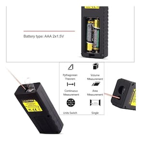 Características: • Design compacto único • Display LCD • Mede com precisão a Distância de 0,5 a 80 metros • Mede temperatura ambiente • Executa cálculos de Área, Volume, Medição Continua, Medição Pitagórica, faz adição, subtração. • A mira Laser ajuda a determinar com precisão a medida. • Ideal para reformas, construtoras, imobiliárias, topógrafos, arquitetos, engenheiros, etc. • À Prova d'água e poeira: IP54 • Tipo de Laser: Classe 2 635nm < lmW • Armazenamento: 20 medições. • Desligamento Automático. • Limpeza de Dados: Sim • Exibição de nivel de bateira: sim. • Exibição de força de sinal: sim. • Interruptor de referencial de medição: sim. • Medição Continua(Max/Min): sim.