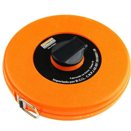 CARACTERÍSTICAS TÉCNICAS: Material da fita: Fibra de vidro Material da caixa: Plástico abs Medidas: 10m (comprimento) x 12mm (largura) Graduação: milímetros e centímetros Marca: Starfer Ref.: 14162135