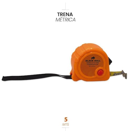 Trena Fita Auto Emborrachada P. Imantada 5m Black Bull A Trena 5m Medidora Com Trava Emborrachada Ponta Imantada Inox da marca Black Bull é a ferramenta perfeita para medições precisas e eficientes. Com um design ergonômico e dobrável, ela se adapta facilmente à sua mão, proporcionando conforto durante o uso. A fita retrátil de 5 metros é feita de plástico e inox, garantindo durabilidade e resistência. Com uma largura de 25 mm, a fita é fácil de ler e possui unidades de medida em centímetros e metros, tornando-a versátil para qualquer tipo de projeto.A trena também possui um botão de trava, permitindo que você fixe a medida desejada, evitando erros e facilitando o trabalho. Além disso, o gancho magnético na ponta da fita permite que você prenda a trena em superfícies metálicas, deixando as mãos livres para realizar as medições.Leve e compacta, com apenas 130g, a Trena 5m Medidora Com Trava Emborrachada Ponta Imantada Inox é perfeita para profissionais da construção, marceneiros, arquitetos e até mesmo para uso doméstico. Adquira já a sua e tenha precisão e praticidade em suas medições.