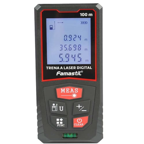 A Trena Laser Digital 100M Profissional Com Cordão Famastil é utilizada para aferir distâncias simples ou personalizadas de até 100 metros. É indicado para medição em locais de difícil acesso, dispensado a utilização de ajudantes, escadas e andaimes. Os cálculos e medidas são confiáveis e precisos, evitando erros na hora de passar orçamentos.