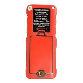 - distancia máxima de medição : 50 metros pilhas novas - potência : 1mw - precisão : 1.5mm - desligamento automático : 2 minutos - nível de proteção : ip54 - comprimento da onda : 620- 680 nm - display lcd : luz de fundo - unidades de medição : m / ft / in / ft + in - temperatura máxima de trabalho : 40'c - temperatura máxima de armazenamento : 60'c - nível do laser : ii - armazenamento de dados : 50 medições - dimensões : 119 x 50 x 26mm - peso : 100g Ean: 7908611100696