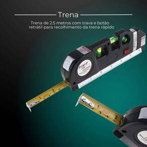 É um item que oferece qualidade e durabilidade. Seu uso é simples e intuitivo, permitindo que qualquer pessoa possa utilizá-la com facilidade. A ferramente possui laser com interruptor, base com régua em alumínio de 6 polegadas e trena de aço de 2,5 metros.