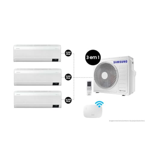 Ar Condicionado Split Inverter WindFree Connect Controle até o Vento Resfriamento no Modo WindFree Sem vento Ao toque de um botão, tenha o máximo de conforto eliminando as correntes de vento geladas do seu ambiente. A Tecnologia WindFree mantém a temperatura ideal e dispersa o ar por meio de 23.000 microfuros gerando uma sensação mais agradável para você e sua família. Mais economia No modo WindFree , o compressor Digital Inverter garante uma eficiência energética ainda melhor e consegue atingir uma economia de até 77% de ene rgia comparado aos modelos convencionais . Além disso possui 10 anos de garantia no compressor e é mais Único com controle de gastos de energia Tenha o controle total dos gastos e consumo de energia emtempo real dos seu ar condicionado com a nova função SmartThings Energy Controle de qualquer lugar e com comando de voz Utilizando o app SmartThings , é possível ligar e desligar o WindFree Connect e controlar a temperatura. Tudo isso é possível também por comandos simples de voz . Compatível com Bixby , Amazon Alexa e Google Assistente Resfriamento 43% mais rápido Com um design que tem maiores aberturas aliado ao poderoso compressor Digital Inverter, o ar climatizado alcança até 15m de d ist ancia em linha reta, em menos tempo, resfriando o ambiente até 43% mais rápido. Filtro Antibacteriano poderoso Filtro lavável que mantém o ar fresco e garante a limpeza da parte interna da unidade. Além de coletar pó, ele elimina até 99 % d e bactérias ao passarem por uma densa malha de filtro antibacteriana Freeze Wash Esterilize seu ar condicionado congelando 90% das bactérias do interior, diretamente pelo controle remoto ou SmartThings