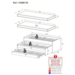 Colchão Principal - Altura: 12cm | Largura: 188cm | Profundidade: 88cm