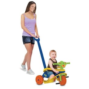 Funcao pedal permite a crianca livremente como um triciclo convencional ,basta remover a haste o cercado e o apoio dos pes
