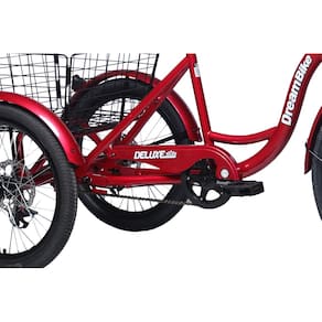 Este modelo de triciclo é ideal para lazer e utilidades de adultos, idosos, assim como pessoas que tem dificuldades, entre outros, pois não exige equilíbrio e oferece uma boa opção para passeio devido ao conforto ao pedalar e a facilidade, além da largura de 0,74 entre rodas que permite facilidade em diversos locais de acesso. Quadro reforçado em formato rebaixado com grande acessibilidade, pintura exclusiva perolizada, roda dianteira aro 26" e traseiras aro 20" aero (folha dupla alumínio), garfo rígido, manete alumínio, freios duplo disco mecânico traseiro, selim 2 molas confort Dream Bike e canote com blocagem para regulagem de altura, guidão elevado, para-lamas dianteiro e traseiro com refletores integrados, relação leve com pedivela 3 peças (movimento central 34.7mm), pedal plataforma com refletor eixo grosso (9/16), coroa com protetor e guia de corrente integrada, protetor de corrente, eixo traseiro 15mm, rolamentos integrados e tração via catraca diferencial TTS (sistema que gera tração e compensa ambas rodas evitando desiquilíbrio), cesta aramada traseira e dianteira com tampa.