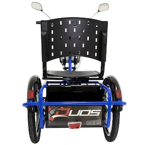 Triciclo Elétrico 800W com Bateria de Lítio 48V 13Ah, Freio a Disco com Ré, Farol e Alarme, modelo FOX, marca Duos, cor Azul e acompanhado com Cestinha.