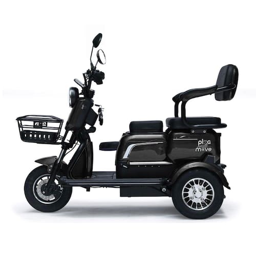 Triciclo Elétrico - New Smart PAM 1000w Lithium - Preto - Plug and MoveO Triciclo Elétrico Smart PAM da Plug and Move é um veículo autopropelido desenvolvido para quem procura uma forma prática, económica e segura de se deslocar pela cidade. Com um motor de 1000 Watts ainda mais potente e bateria de lítio recarregável de 60V e 20Ah, ele oferece desempenho ideal para deslocamentos urbanos e tarefas cotidianas. Sua autonomia de até 35 km por carga garante liberdade para ir e vir com tranquilidade, e o melhor: ele pode ser recarregado em qualquer tomada comum, tornando seu uso ainda mais prático.Os freios na manopla e no pedal asseguram total segurança em diferentes condições de uso, além do botão seletor de marcha ré, que facilita as manobras em espaços reduzidos. Com 2 modos de uso: singular e passageiro, o condutor pode escolher conforme a sua necessidade. O Smart PAM também traz tecnologia de ponta: o painel digital com acionamento por NFC exibe informações essenciais como nível de bateria, velocímetro, níveis de velocidade e hodômetro. Informações:• Produto: Triciclo Elétrico Smart PAM 1000 Watts• Marca: Plug and Move• Linha: Smart PAM• Tipo: Triciclo Elétrico com Marcha Ré e Assentos Extras• Categoria: Autopropelido (não exige registro, emplacamento ou habilitação)• Conteúdo incluso:- 1 Triciclo Smart PAM- 1 Carregador bivolt 110/220- 2 Cartões NFC- 2 Chaves de ignição- 2 Controles de alarme• Recomendação: para maiores de 18 anos de idade Acessórios e Funcionalidades:• 2 modos de condução: modo singular e modo passageiro com 3 lugares• Painel digital com: indicador de nível de bateria, hodômetro, velocímetro e modos de velocidade• Acionamento por cartão NFC: tecnologia que permite ligar o triciclo por aproximação• Suporte para celular e carregador USB• Caixinha de som bluetooth• Marcha ré: com acionamento por botão• Porta-objetos de fácil acesso• Bagageiro traseiro com chave• Cesto frontal• Retrovisores Bateria e Motor:• Motor: Sem escova de cubo (brushless)• Potência do motor: 1000 watts• Bateria: Lítio (bateria recarregável de grande capacidade)• Voltagem da bateria: 60V• Capacidade da bateria: 20Ah• Recarga: com carregador bivolt (110v / 220v) Capacidade e Dimensões:• Autonomia: média de 35 km por carga (pode variar devido ao peso carregado, tipo de trajeto e velocidade)• Velocidade Média:- até 17Km/h (Velocidade 1 - Eco)- até 25Km/h (Velocidade 2 - Normal)- até 32Km/h (Velocidade 3 - Power)• Dimensões (C x A x L): 160 cm x 112 cm x 65 cm• Peso do veículo: 90 kg• Peso suportado: até 150 kg (sem perder a autonomia) Conforto e Praticidade:• Assento desenvolvido para o melhor conforto durante a condução: design traçado na linha do corpo humano, mantém a curvatura lombar e proporciona mais conforto• Assento ajustável retrátil e com movimento dianteiro / traseiro• Assento infantil embutido e dobrável• Base larga para apoio dos pés• Garfo dianteiro com sistema de absorção de impacto tornando a condução mais suave Segurança:• Sistema antifurto inteligente: trava de roda com acionamento pelo controle remoto. Alarme acionado automaticamente através de sensor de movimento• Compartimento de bateria fechado• Freio de mão (manete) e freio de pé (pedal)• Freios: Dianteiro a disco / Traseiro a tambor• Farol em LED: Farol Baixo e Farol Alto com grande capacidade de iluminação• Setas de indicação de direção• Luzes traseiras de sinalização: luz forte e concentrada proporcionando a condução noturna mais segura• Luzes traseiras de sinalização: luz forte e concentrada proporcionando a condução noturna mais segura• Retrovisores para proporcionar visibilidade ampliada e garantir a segurança do condutor ao observar o tráfego ao redor Observações:• O triciclo é enviado pré-montado por motivo de acomodação na embalagem para transporte• A montagem, instalação e revisão final é de responsabilidade do cliente. Sugerimos que seja efetuada por uma oficina especializada• O tempo de carregamento da bateria é de 06 a 08 horas (nunca deixe carregando mais do que 8 horas)• As baterias devem ser carregadas a cada 15 dias mesmo que não sejam utilizadas Garantia:• 06 Meses (Motor e Bateria)• 03 Meses (Demais Peças) Avisos:• As imagens são meramente ilustrativas• Os pesos, tamanhos e medidas são aproximados• As cores e estampas dos produtos podem ter variações• As informações são de responsabilidade do fabricante ou fornecedor Marca: Não Informado