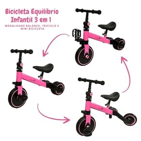 Essa Bicicleta é uma ótima opção para aquele passeio no parque com seu filho, excelente para treinar o equilíbrio da criança e a coordenação motora além de ser um produto 3 em 1, possui a opção de utiliza-la como bicicleta de equilíbrio, mini bicicleta ou triciclo.
