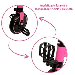 - Modalidade balance, modalidade triciclo e modalidade mini bicicleta
