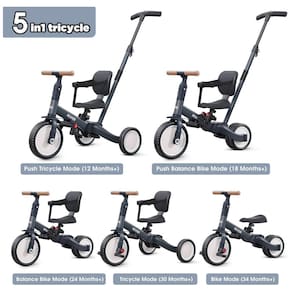 5 modos: Modo Push Tricycle, Modo Push Balance Bike, Modo Triciclo, Modo Balance Bike e Modo Bike. O triciclo multifuncional é adequado para meninos e meninas de 1, 2,3 e 4 anos. Guiador de direção: girando 135 graus para controlar e dirigir a velocidade e direção do triciclo. Protegendo seu filho de cair e se machucar. Também pode ser ajustado de acordo com a altura dos pais para que papai e mamãe possam acompanhar os treinos com seu pequeno. Guiador, assento e pedais ajustáveis: Pressione o botão vermelho para ajustar o guiador e o assento. Existem 3 posições para colocar os pedais ao transformar diferentes modos. Estrutura de aço carbono e rodas EVA: aprovadas pela EN188 e ASTM. Feito de aço carbono de alta qualidade, rodas sólidas de absorção de choque em EVA e assento em PP ecológico. Vida duradoura, design durável e elegante. Fácil acesso de uso: Muito mais fácil de montar guiador e rodas. Pressione os botões para convertê lo em diferentes modos. Adequado para crianças de 1 a 4 anos com menos de 110 centímetros 43,3 polegadas Marca: Não Informado