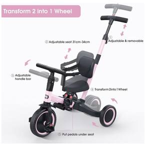 5 modos: Modo Push Tricycle, Modo Push Balance Bike, Modo Triciclo, Modo Balance Bike e Modo Bike. O triciclo multifuncional é adequado para meninos e meninas de 1, 2,3 anos. Guiador de direção: girando 135 graus para controlar e dirigir a velocidade e direção do triciclo. Protegendo seu filho de cair e se machucar. Também pode ser ajustado de acordo com a altura dos pais para que papai e mamãe possam acompanhar os treinos com seu pequeno. Guiador, assento e pedais ajustáveis: Pressione o botão vermelho para ajustar o guiador e o assento. Existem 3 posições para colocar os pedais ao transformar diferentes modos. Estrutura de aço carbono e rodas EVA: aprovadas pela EN188 e ASTM. Feito de aço carbono de alta qualidade, rodas sólidas de absorção de choque em EVA e assento em PP ecológico. Vida duradoura, design durável e elegante. Fácil acesso de uso: Muito mais fácil de montar guiador e rodas. Pressione os botões para convertê lo em diferentes modos. Adequado para crianças de 1 a 3 anos com menos de 110 centímetros 43,3 polegadas Marca: Não Informado