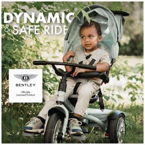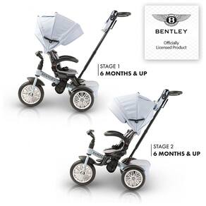 Triciclo Infantil 6 em 1, Oficialmente Projetado pela Bentley com Cobertura e Alça para os Pais, POSH BABY KIDS, Azul Claro