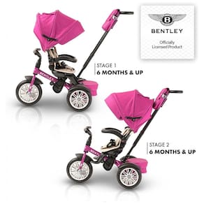 OFICIALMENTE LICENCIADO E PROJETADO PELA BENTLEY MOTORS UK Este triciclo 6 em 1 faz uma declaração ousada onde quer que você vá. Ele se transforma de um triciclo infantil em um triciclo infantil grande à medida que seu bebê cresce dos 6 meses aos 5 Anos.