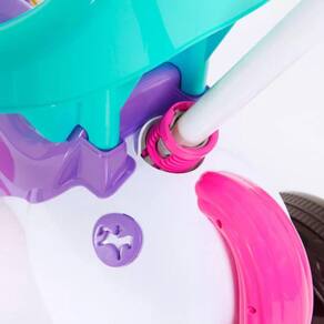 DESCRIÇÃO DO PRODUTO: Calesita Fantasy é um mágico unicórnio com rodinhas para meninos e meninas, colorido e muito confortável é o companheiro ideal de grandes aventuras no mundo dos sonhos. Ele tem som, pedal e o chifre do unicórnio tem luz e tem um delicado som dando asas a imaginação. Além de ser uma opção para um passeio divertido e lúdico o Calesita Fantasy estimula a coordenação motora de braços e pernas dos pequenos.