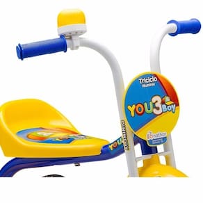 O Triciclo You 3 Boy da Nathor é fabricado com pneus em EVA, quadro de alumínio super leve, com cestinha, buzina e adesivos. Completamente dinâmico e ergométrico, possui um pedalar macio e confortável devido aos pneus EVA. Muita diversão sobre três rodas para a criançada!