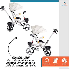 Assento Giratório 360°: A criança pode passear virada para os pais ou para a frente.