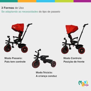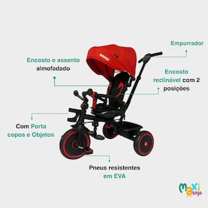 - Conteúdo da Embalagem: 1 Triciclo com Empurrador Maxi Toys