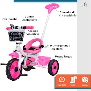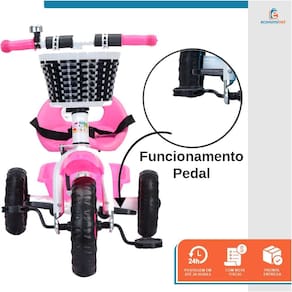 O Triciclo Flex é o companheiro perfeito para crianças de 1 a 6 anos, proporcionando uma divertida e emocionante experiência de passeio. Projetado com cuidado e segurança em mente, este triciclo é capaz de suportar um peso máximo de 30 kg, garantindo que as crianças possam desfrutar de longas aventuras. Além disso, o Triciclo Flex possui um cesto frontal e traseiro espaçoso, oferecendo espaço de armazenamento adicional para levar brinquedos, lanches ou outros itens essenciais durante o passeio. Os pequenos ciclistas podem levar seus tesouros favoritos e mantê-los sempre por perto.Não utilize o triciclo perto de escadas, declives, ruas e avenidas, piscinas ou qualquer corpo de água, fios elétricos, locais com alta temperatura, umidade ou qualquer solo desnivelado pois o triciclo pode ser danificado.Características:- 1 a 6 Anos- Peso máximo 30Kg- Possui apoiador removível- Funcionamento Pedal- Cesto frontal e traseiro- Aprovado pelo INMETROEspecificações técnicas:Material: Aço e PlásticoMaterial da roda: Roda de espumaMedidas: 82cm (altura) x 43cm (largura) x 90cm (profundidade)Peso: 8KgMarca: Baby StyleRef.: 22231