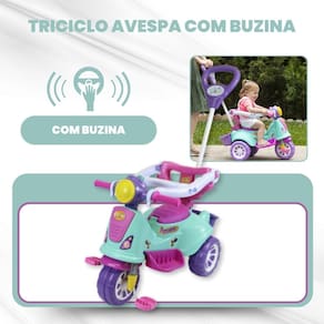 Descrição Inspiradora: Deixe seu pequeno explorador desbravar o mundo com estilo! O Triciclo Avespa Pink é projetado para oferecer duas funções: passeio e pedal. Ele é o companheiro ideal que cresce com seu filho, promovendo coordenação motora e curiosidade enquanto as crianças navegam por novas descobertas.
