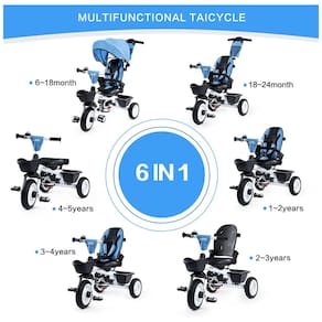 6 em 1 triciclo com design multifuncional, este triciclo infantil grande pode ser transformado em 6 modos de uso. Nossos triciclos infantis 6 em 1 para crianças serão uma das boas lembranças da infância de seus filhos. PROJETO DE SEGURANÇA O cinto de segurança de 3 pontos no assento infantil triciclo de 2 anos oferece a combinação perfeita de conforto e segurança infantil. Barra de segurança destacável, freios duplos, capota anti UV, tudo isso garante um passeio sem problemas para o seu bebê. QUALIDADE CONFIÁVEL O triciclo de bicicleta push é feito de estrutura de metal que pode suportar até 24 kg, tecido Oxford 600D que fornece ventilação nas costas do assento, plástico ABS, rodas todo o terreno não infláveis. A alça de triciclo tem aprovação ASTM F963 e EN71. ASSENTO PARA INFANTE DE FRENTE PARA A TRÁS As bicicletas de triciclo para assento de bebê podem ser ajustadas e invertidas para permitir que seu bebê curioso interaja com você cara a cara ou observe a natureza em movimento encosto multiposição pode ser ajustado de 100 a 120 120 para o banco virado para trás, para encontrar a posição perfeita para o seu triciclo para o conforto das crianças Marca: Não Informado