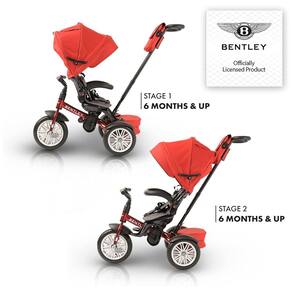 LICENCIADO OFICIALMENTE E PROJETADO PELA BENTLEY MOTORS UK Este triciclo 6 em 1 faz uma declaração ousada onde quer que você vá. Ele se transforma de um triciclo de bebê em um triciclo de criança grande à medida que seu bebê cresce de 10 meses a mais de 5 anos.