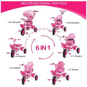 6 EM 1 TRICICLO Com design multifuncional, este triciclo infantil grande pode ser transformado em 6 modos de uso. Este triciclo para bebês pode crescer com uma criança de 8 meses a 6 anos, o que será um investimento gratificante para a infância de seu filho. Nossos triciclos infantis 6 em 1 para crianças serão uma das boas lembranças da infância de vocês. DESIGN DE SEGURANÇA O arnês de segurança de 3 pontos no assento do triciclo infantil de 2 anos oferece a combinação perfeita de conforto e segurança infantil. Barra de segurança destacável, freios duplos, capota anti UV, tudo isso garante um passeio sem problemas para o seu bebê QUALIDADE CONFIÁVEL O triciclo push bike é feito de ção de metal que pode suportar até 55 libras, tecido Oxford 600D que fornece encosto ventilado, plástico ABS, rodas todo o terreno não infláveis. A alça do triciclo tem aprovação ASTM F963 e EN71 ASSENTO DE INFANTIL PARA TRÁS As bicicletas triciclo para assento de bebê podem ser ajustadas e invertidas para permitir que seu bebê curioso interaja com você cara a cara ou observe a natureza em movimento o encosto multiposição pode ser ajustado de 100 a 120 120 para assento voltado para trás, para encontrar a posição perfeita para o seu triciclo para o conforto das crianças Marca: Não Informado