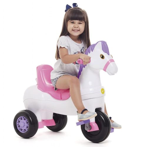 Triciclo Infantil Passeio e Pedal Cavalinho Potó - Rosa - Calesita deixa os passeios com o bebê mágicos. Ele é muito divertido e imita som de cavalo! O Cavalinho Calesita Potó é um brinquedo 2 em 1 que acompanha as fases de crescimento da criança com todo o conforto e segurança necessário para a diversão ser completa. Na primeira fase, o apoio de pés mantém as perninhas do bebê apoiadas e, a estabilidade do corpo é garantida pelo cercado de proteção, também removível. Já na fase mais independente do bebê, retira-se o apoio de pés e cercado de proteção para a diversão do passeio pedal. Pensando nessa independência para a diversão do pedal, o Potó foi projetado com roda dianteira acompanhada de borracha para evitar derrapar. POTÓ CALESITA - ROSA - 2 EM 1 - PASSEIO E PEDAL: FUNÇÃO PASSEIO: Na primeira fase, o adulto utiliza a direção guiada para manobrar com segurança e facilidade. O apoio de pés mantém as perninhas do bebê apoiadas e, a estabilidade do corpo é garantida pelo cercado de proteção. FUNÇÃO PEDAL: Retira-se o apoio de pés e cercado de proteção para transformar o Potó em um triciclo convencional para a criança brincar de pedalar. DETALHES - Suporte para bolsa - Direção e rodas guiadas pelo empurrador - Rodas dianteiras com borracha para não derrapar - Encaixe e desencaixe do empurrador fácil e pratico HABILIDADES DESENVOLVIDAS: - Coordenação entre olhos e pés - Coordenação motora fina - mãos e dedos - Coordenação motora grossa - braços e pernas INFORMAÇÕES: • Produto: Triciclo Potó Rosa • Peso máximo suportado: até 30 kg • Marca: Calesita Brinquedos • Recomendação: - Passeio: A partir de 12 meses de idade - Pedal: A partir de 24 meses de idade • Conteúdo: 1 Potó, 1 Haste/Empurrador, 1 Suporte para bolsa, 1 Aro Protetor, 1 Par de Apoio de Pés e 1 Manual de Instruções AVISO: • As imagens são meramente ilustrativas. As cores e estampas dos produtos podem ter variações. As informações são de responsabilidade do fabricante ou fornecedor.