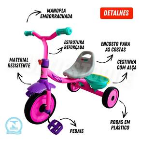 Triciclo infantil rosa - diversão e estilo para crianças Triciclo infantil rosa Você já notou como é fundamental para as crianças explorarem o ambiente ao seu redor Sem um brinquedo apropriado, elas podem perder a chance de desenvolver habilidades essenciais, como equilíbrio e coordenação, enquanto se divertem. O triciclo infantil rosa é a escolha ideal para pequenos aventureiros com um design encantador e cores vibrantes, ele não apenas chama a atenção, mas também garante segurança e conforto. Cada pedalada contribui para o desenvolvimento da coordenação motora e da autonomia, permitindo que as crianças se sintam confiantes enquanto brincam, tanto em casa quanto ao ar livre. Benefícios - promove o desenvolvimento motor e a independência - design seguro e confortável para longas horas de brincadeira - acompanha o crescimento da criança com assento ajustável - perfeito para uso em ambientes internos e externos Especificações técnicas - altura do triciclo: aproximadamente 55cm - comprimento do triciclo: aproximadamente 62cm - comprimento do guidão: aproximadamente 41cm - peso aproximado: 2,500kg - registro inmetro: 002966/2021 Conteúdo da embalagem - 01 triciclo infantil - rosa Não perca a oportunidade de proporcionar momentos incríveis de aventura e aprendizado para seu filho adquira já o triciclo rosa e veja a felicidade em cada pedalada Informações importantes sobre a compra - com de fábrica Dúvidas frequentes: 2 - em quanto tempo meu pedido será enviado 3 - é seguro realizar esta compra Resposta: desde a fundação da nossa empresa, já atendemos milhares de clientes satisfeitos em outras lojas online. Somos uma loja oficial neste marketplace. Além de todas as garantias da plataforma, oferecemos também de fábrica. 4 - os produtos têm Resposta: sim, oferecemos de 30 dias em todos os nossos produtos. Se houver qualquer problema, resolveremos da melhor forma possível. 5 - esta compra é segura Resposta: sim, garantimos total segurança na sua compra e a privacidade dos seus dados. 6 - e se eu não gostar do produto, terei meu dinheiro de volta Resposta: de acordo com o cdc código de defesa do consumidor , todo cliente de compras online tem até 7 dias para devolver o produto em caso de arrependimento, sem custo na devolução. Você será reembolsado em 100% do valor da compra. Caso tenha alguma dúvida, envie-nos uma mensagem e responderemos o mais rápido possível. Marca: Não Informado