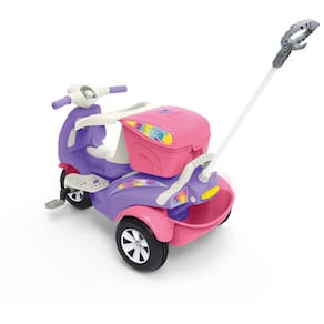 MOTO UNO ROSA/ROXA 1036 DESCRIÇÃO DO PRODUTOPrepare-se! A aventura sobre três rodas vai começar! Os pequeninos irão acelerar rumo a diversão com a nova moto da Calesita. A Moto Uno é um triciclo dois em um, para passear ou pedalar. Vem com bauzinho para guardar brinquedos, farol que acende e som divertido para estimular a imaginação.CARACTERÍSTICAS DO PRODUTONa versão passeio acompanha o empurrador, aro protetor e apoio de pés removível, fácil de encaixar.E para sair pedalando, basta retirar os acessórios.Então a moto está pronta para que os pequeninos explorem o passeio e sintam no rosto o vento com a Moto Uno. Calesita, brincadeira de verdade.ESPECIFICAÇÕES TÉCNICAS- Marca: Calesita- Modelo: 1036- Necessita o uso de Pilhas: Sim - Com cinto de segurança: Sim- Com Som: Sim - Anel de Proteção Removível- Apoio de Pés e Empurrador- Apoio do Pé Removível- Com Aro Protetor- Idade Recomendada Para Passeio: 12 Meses- Idade Recomendada Para Pedal: 24 Meses- Passeio ou Pedal- Possui Suporte para Bolsa e Sacola- Direção Guiada Pelo AdultoHABILIDADES DESENVOLVIDAS- Compreensão de causa e efeito- Coordenação entre olhos e pés- Coordenação motora fina – mãos e dedos- Curiosidade e descoberta- Habilidades SensoriaisDIMENSÕES DO PRODUTO- ALtura do produto:62cm- Largura do produto:58cm- Comprimento do produto:100cm- Peso do produto:8,700Kg- Altura da embalagem:69cm- Largura da embalagem:59cm- Comprimento da Embalagem:100cm- Peso da embalagem:10KgITENS INCLUSOS- 01 Moto Uno Rosa/Roxa- 01 Aro Protetor- 01 Par de Apoio de Pés- 01 Haste / 1 Empurrador- 01 Manual de Instrução- 01 Capacete de Brinquedo