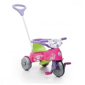 Triciclo Tate Tico Infantil Calesita Rosa Carrinho de passeio triciclo ta te tico azul Modelo 2 em 1 use por mais tempo Ao retirar os acessórios, o guidão gira e a criança pode pedalar desenvolvendo a coordenação dos movimentos. Leve e compacto mas gigante em diversão. Leve, prático e confortável O ta te tico é daqueles triciclos 2 em 1 despojados e práticos, que acompanha as fases de crescimento da criança com conforto e segurança. Na primeira fase, o apoio de pés mantém as perninhas do bebê confortavelmente apoiadas, e, a estabilidade do corpo é garantida pelo cercado de proteção, também removível. Já na fase mais independente do bebê, retira-se o apoio de pés e cercado de proteção para a diversão do passeio pedal. Pensando nessa independência para a diversão do pedal, o ta te tico foi projetado com roda dianteira acompanhada de borracha para evitar derrapar, legal né