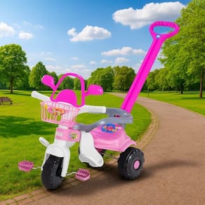 Perfeito para transformar qualquer momento em uma verdadeira festa, o triciclo ainda possui detalhes encantadores na cor rosa, que tornam a brincadeira ainda mais especial.
