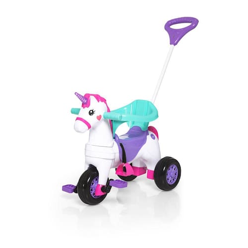 Aventuras, passeio e pedal, ficam mais divertidos com o Carrinho Motoca Triciclo da Calesita, um carrinho seguro e divertido para passeios. Com aro protetor, apoio de pés e empurrador, a segurança e a alegria estão garantidas. O Fantasy estimula a coordenação motora: tirando os acessórios a criança pode pedalar livremente. Com melodias e luzes.