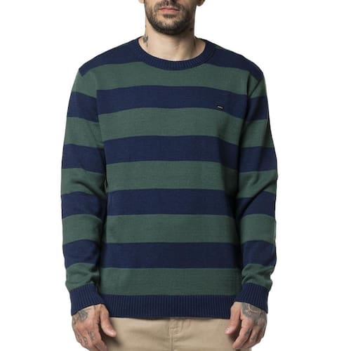 Tricot RVCA careca listrado, em ponto com listras, barra das mangas e do corpo em canelado, com etiqueta RVCA aplicado no peito e etiquetas personalizadas.