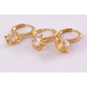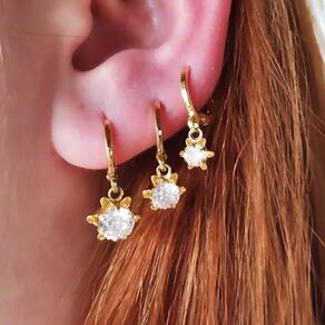Esse trio é composto por argolinhas articuladas seguido de estrelinhas com zircônias, um verdadeiro encanto de brincos.