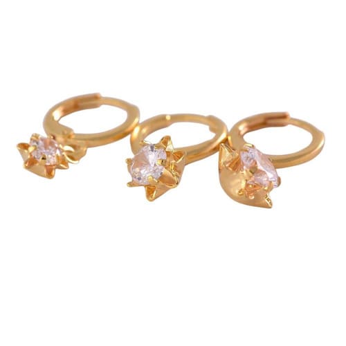 Trio Argolinha Estrelinha de Zircônia Folheado em Ouro 18k O Trio Argolinha Estrelinha de Zircônia é um encanto. Perfeito para suas composições diurnas e noturnas, junto aos acessórios de seu mix pessoal. Faça livremente a combinação que mais agrada você, unindo esse trio com outros itens secundários e primários sem nenhuma dificuldade. Um acessório feminino folheado em ouro 18k.