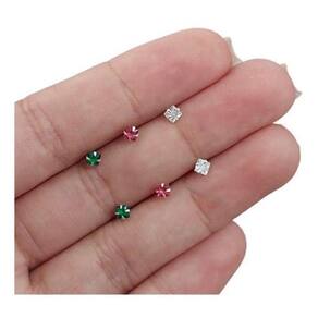 Trio de brincos de prata 925 com zircônias. Este anúncio é para 3 pares 6 peças . Cores: branco cristal ; rosa; verde. Lindo para crianças, segundo furo e terceiro furo. Consulte o logo abaixo do valor do produto. Marca: Não Informado