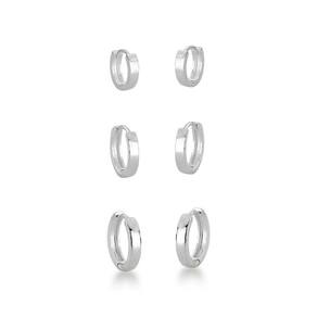 Trio Brincos Argola Chata lisa Prata 925