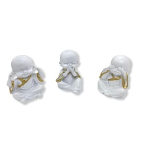 Trio Budas Cego Surdo Mudo Branco 5,5 Resina Sabedoria e Paz Esta escultura em resina trará boas energias e harmonia para sua casa, irá trazer bons fluídos. É ideal para colocar em seu altar ou completar a decoração de seu ambiente. Esculturas são itens especiais e decorativos, é um recurso que dá um toque a mais em qualquer ambiente, tem um valor espiritual e sentimental. Você pode enfeitar com um estilo próprio com muito bom gosto o seu altar ou ambiente. Aplicação: